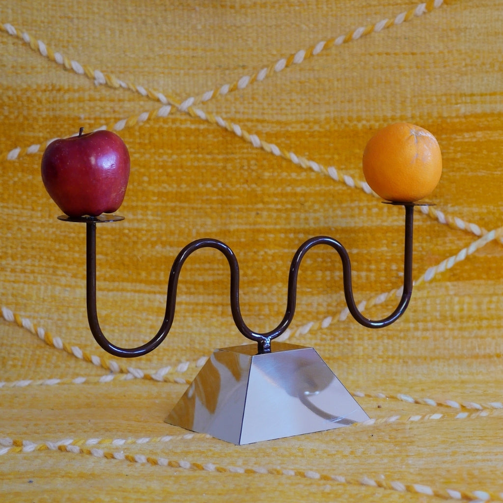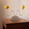 Quand le design ondule et que la table s’amuse. Issus de la même famille que l’étagère et le tabouret de bar Dolores, ces bougeoirs jouent avec la ligne ondulante et l’esprit graphique de la collection. Leur socle en inox apporte une touche résolument moderne, tandis que les bras en fer peint, en marron glacé ou beige glacé, dessinent une silhouette presque dansante.