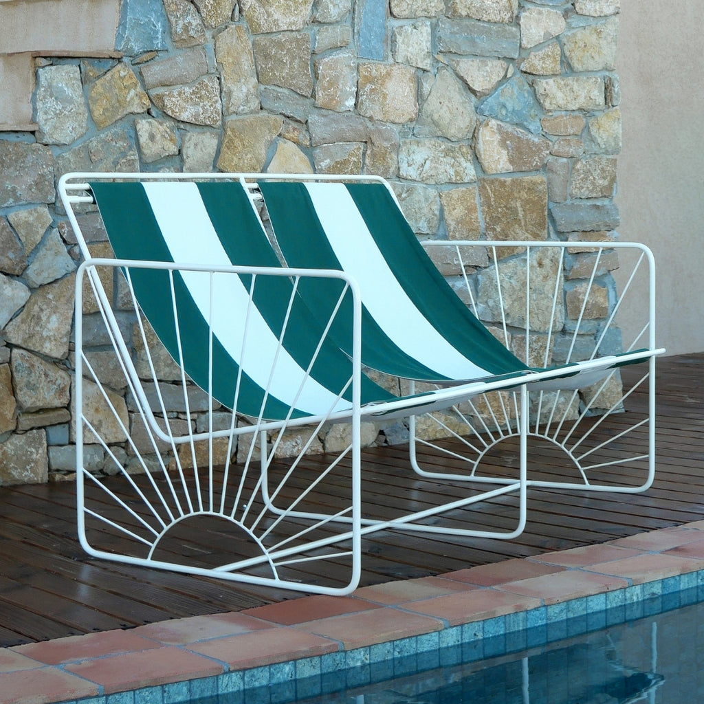 La banquette double Eldorado fait son grand retour cette année dans une nouvelle version en toile rayée. Une invitation aux vacances, au soleil et à la détente, cette version prolonge l’esprit convivial de la gamme.