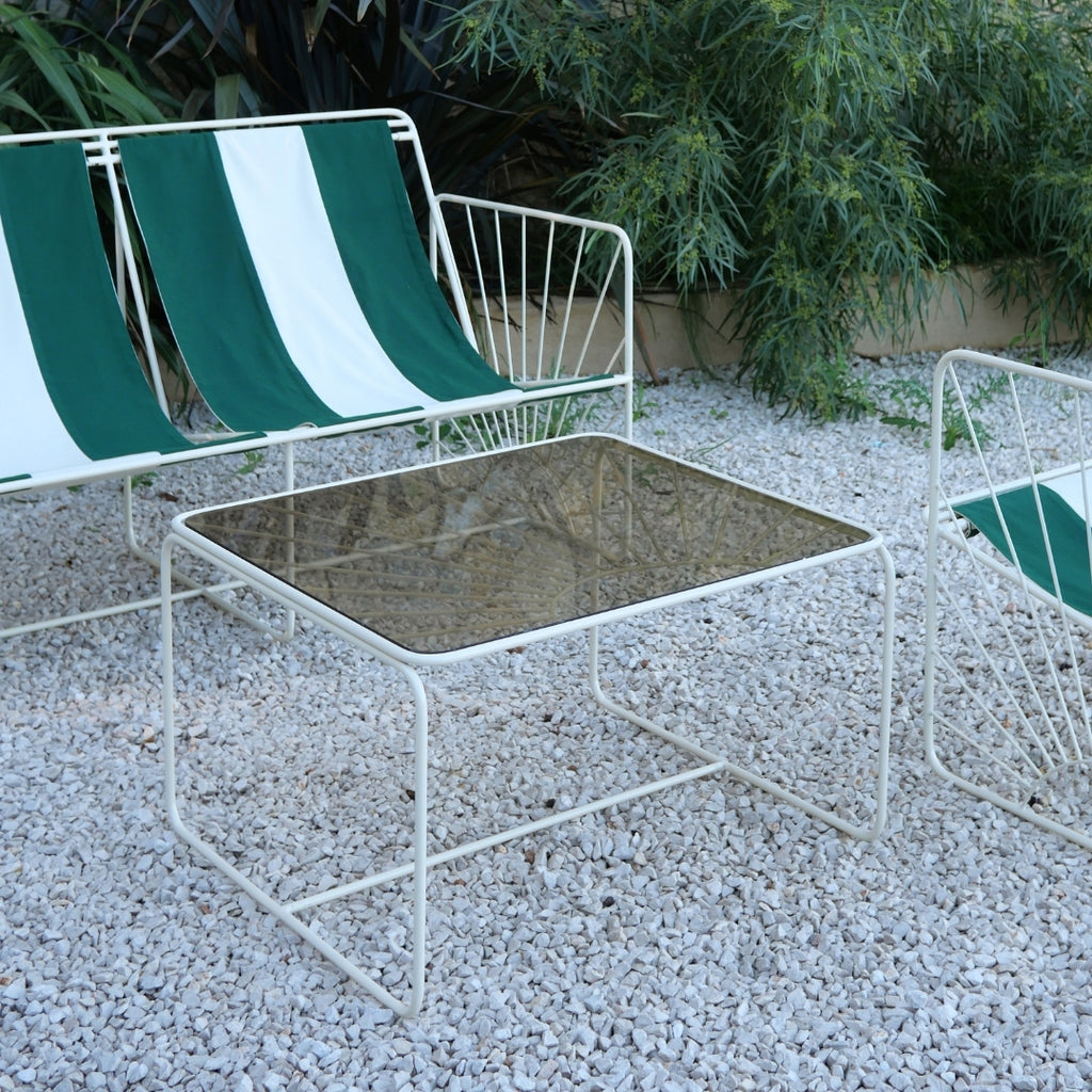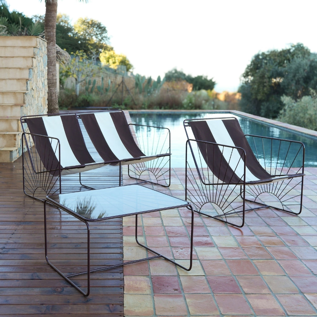 Cette année, la table Eldorado se réinvente et s’enrichit de deux nouvelles teintes de fer inédites, beige glacé et marron glacé, ainsi que d’un plateau en verre fumé. Imaginée pour compléter l’univers Eldorado et en prolonger l’esprit solaire, graphique et coloré, la table affirme une présence à la fois forte et légère.