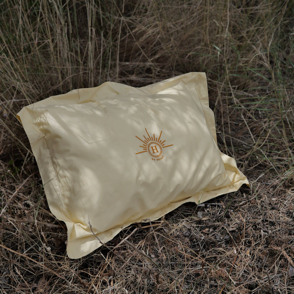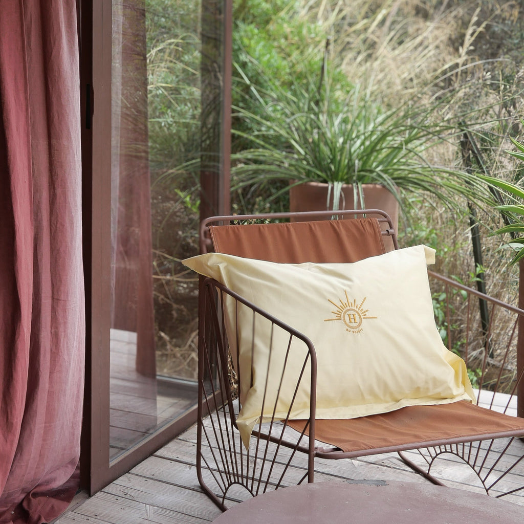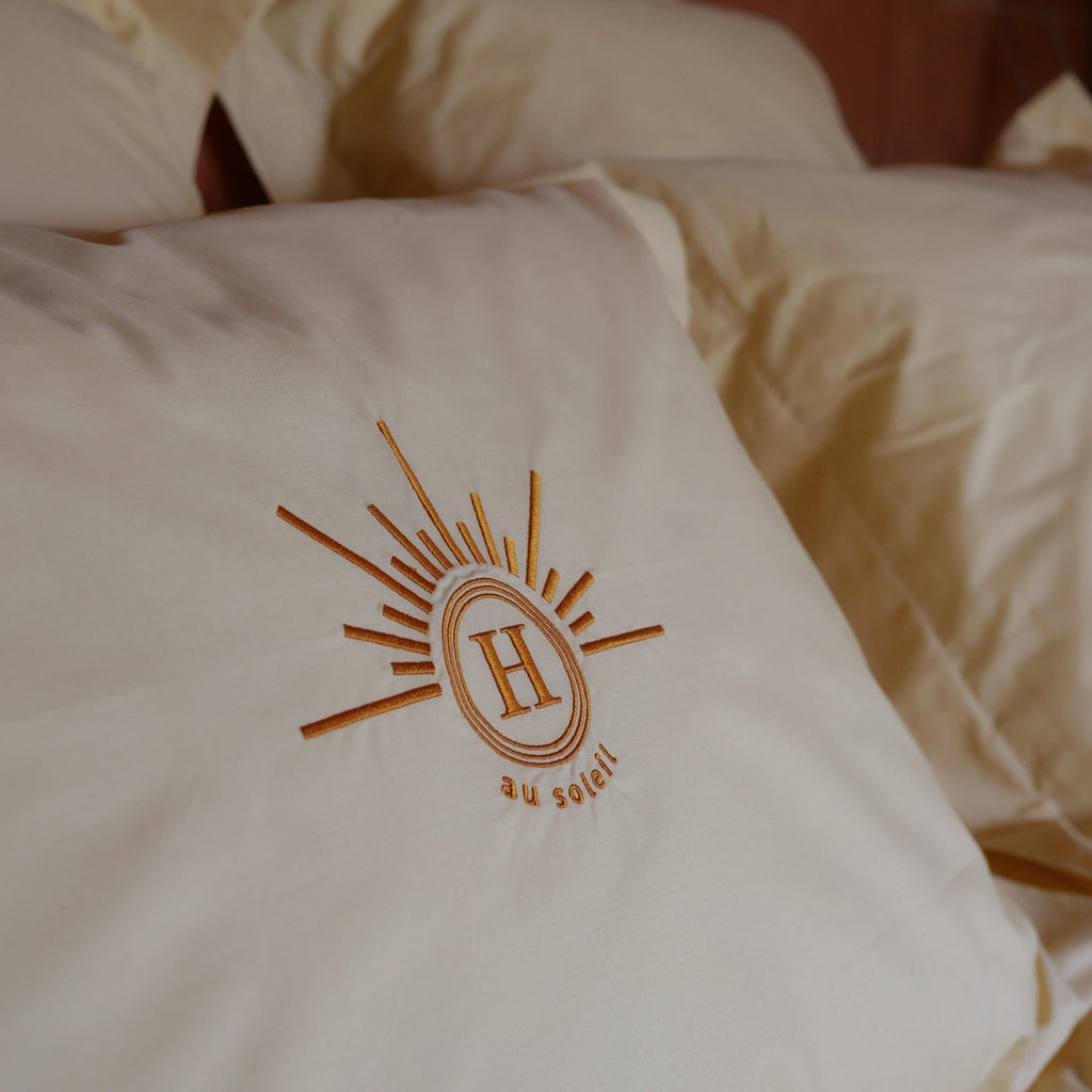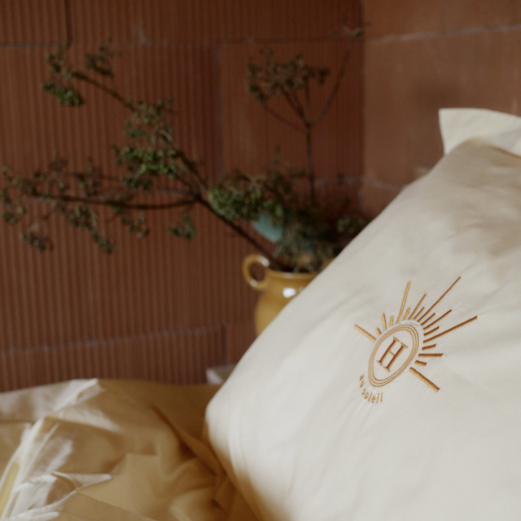 Déclinée en plusieurs coloris, avec des broderies ton sur ton ou contrastées, les taies d'oreillers Au Soleil s’adapte à votre chambre, votre humeur, et toutes vos envies d’évasion. Disponible en deux tailles, 50 x 70 cm (rectangle) ou 65 x 65 cm (carrée).