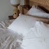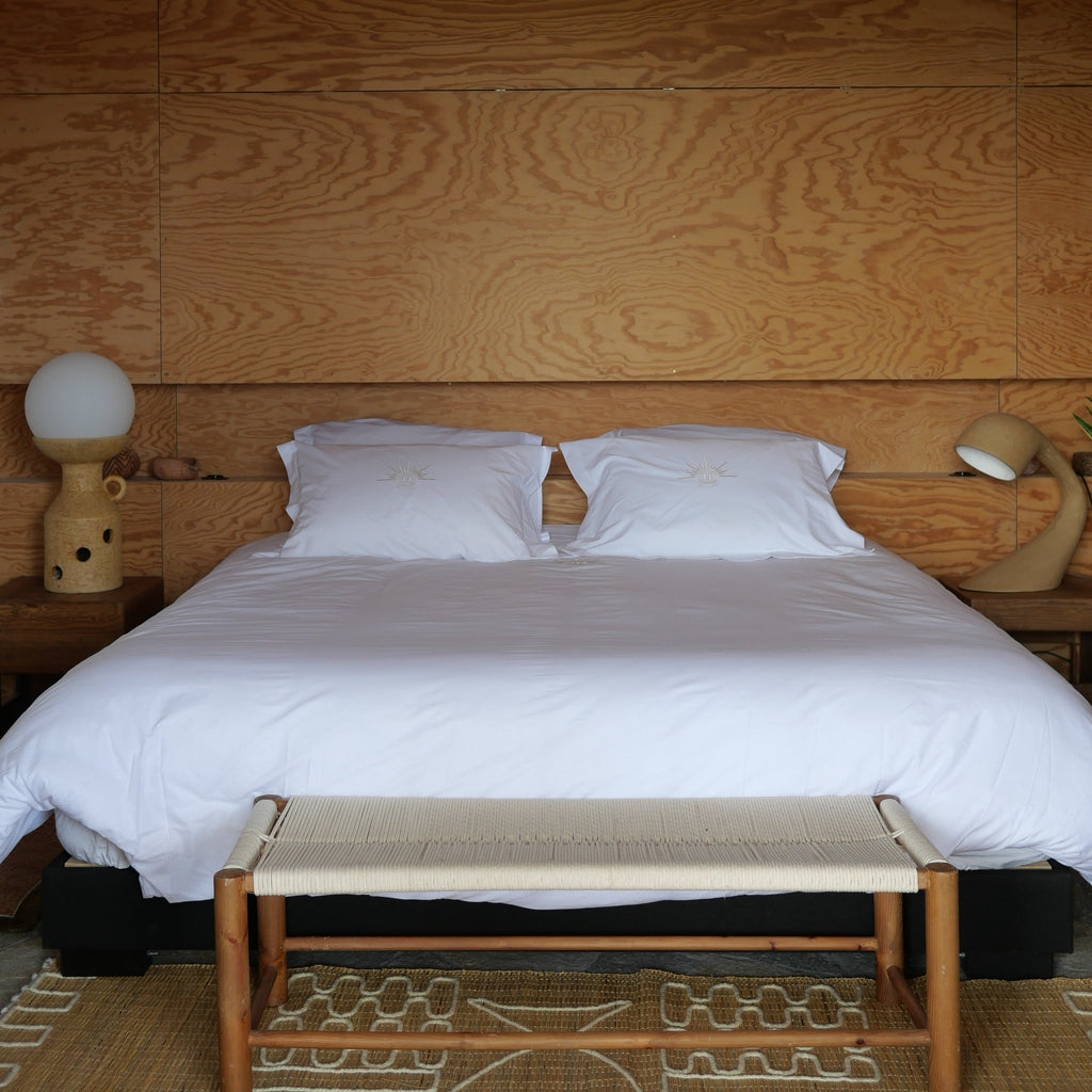 On y a glissé un peu de soleil dans la broderie, un souffle d’air chaud dans la percale… et l’envie folle de ne plus jamais sortir de son lit. Et comme on dit chez nous : “Merci Monsieur Lit.”