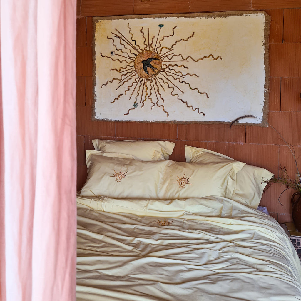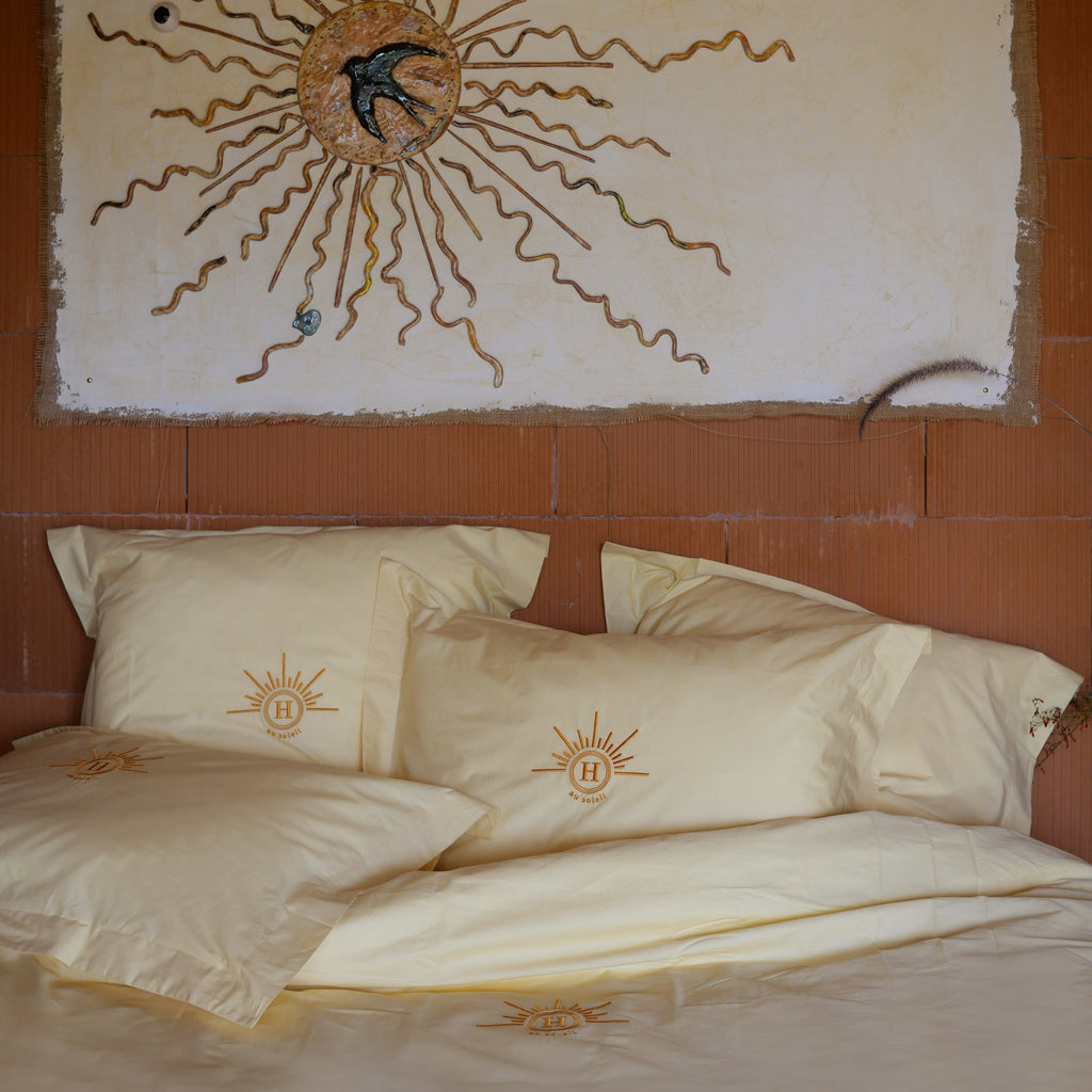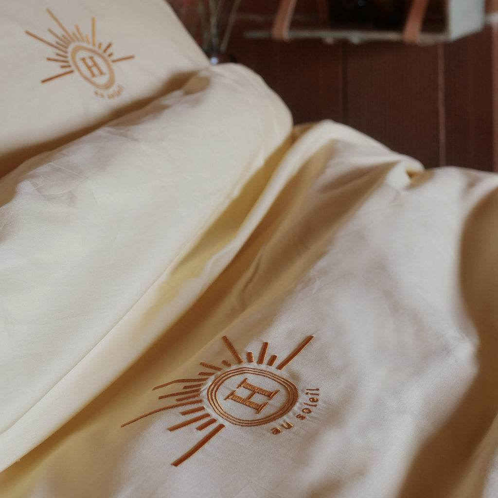 Parure de lit Au Soleil - Jaune paille broderie orange