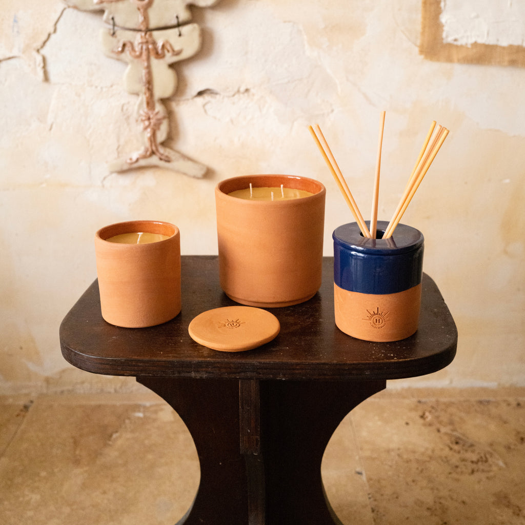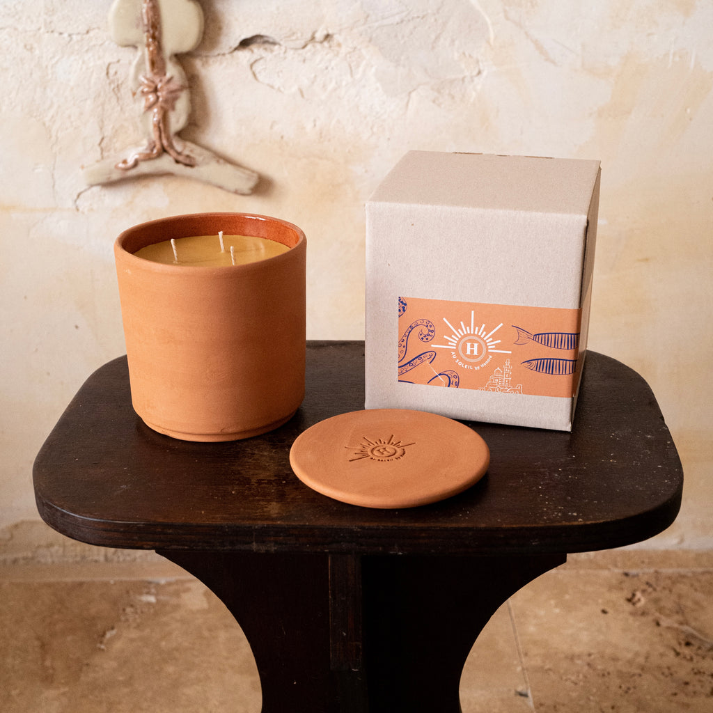 Découvrez Au Soleil by Honoré, une nouvelle gamme de senteurs qui invite à l’évasion : des bougies en cire d’abeille aux notes chaudes de miel de fleurs et de bois, et un diffuseur au sel de mer aux accents frais et minéraux. Une collection simple, solaire, qui capture l'esprit d'un été au bord de mer.