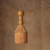 Son tronc en céramique est de forme organique, son abat-jour tressé est de forme conique prolongée de longues franges dorées. Georgette diffusera la lumière de centaines de rayons dans votre pièce.