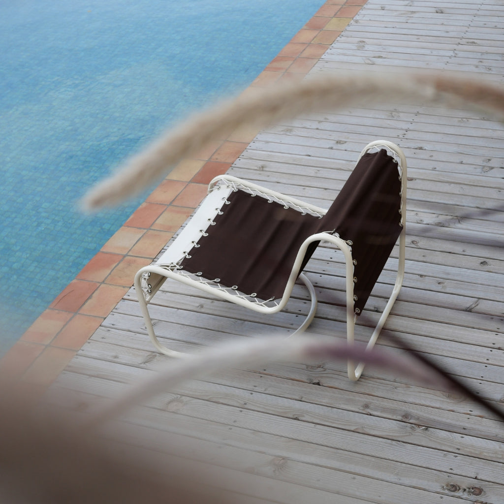 Le travail sur l’épaisseur de la structure et le cordage des tissus confère au fauteuil Campo un confort enveloppant et une allure singulière. Il apporte une élégance intemporelle à la scénographie extérieure, idéal pour aménager un coin détente au caractère affirmé.