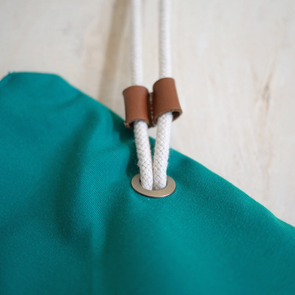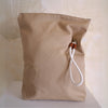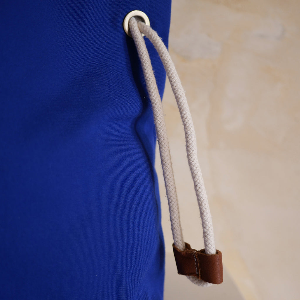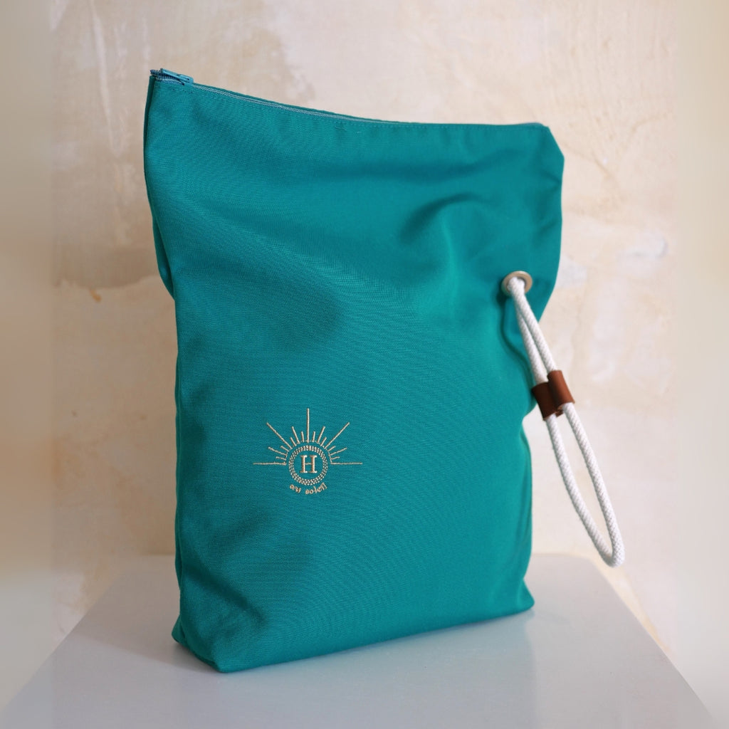 • Pochette en toile déperlante avec détails en cuir, cordon en corde, logo brodé Au Soleil