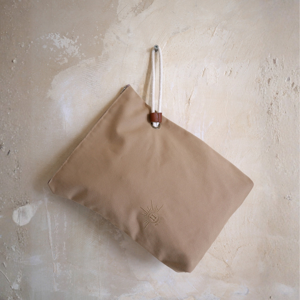 La rentrée est là, mais le soleil reste dans votre style ! La pochette Au Soleil vous accompagne partout, de la valise du week-end à votre sac du quotidien. Sa toile solide associée à des détails en cuir lui confère une allure à la fois décontractée et élégante.